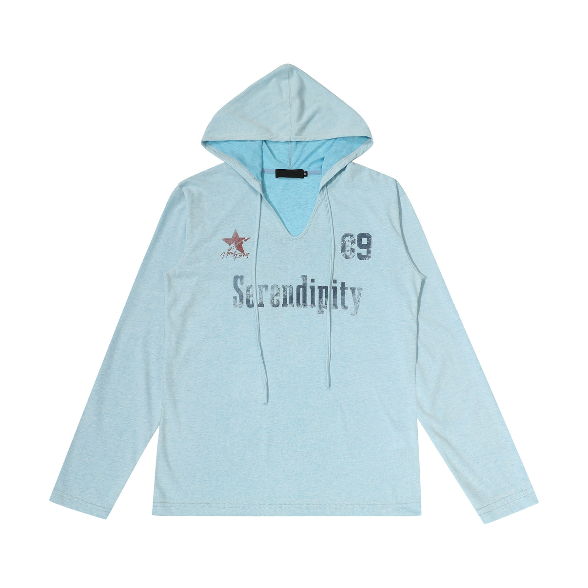 JimmyTheCrew Vintage Alphabet Print Hooded Long Sleeve T-Shirt