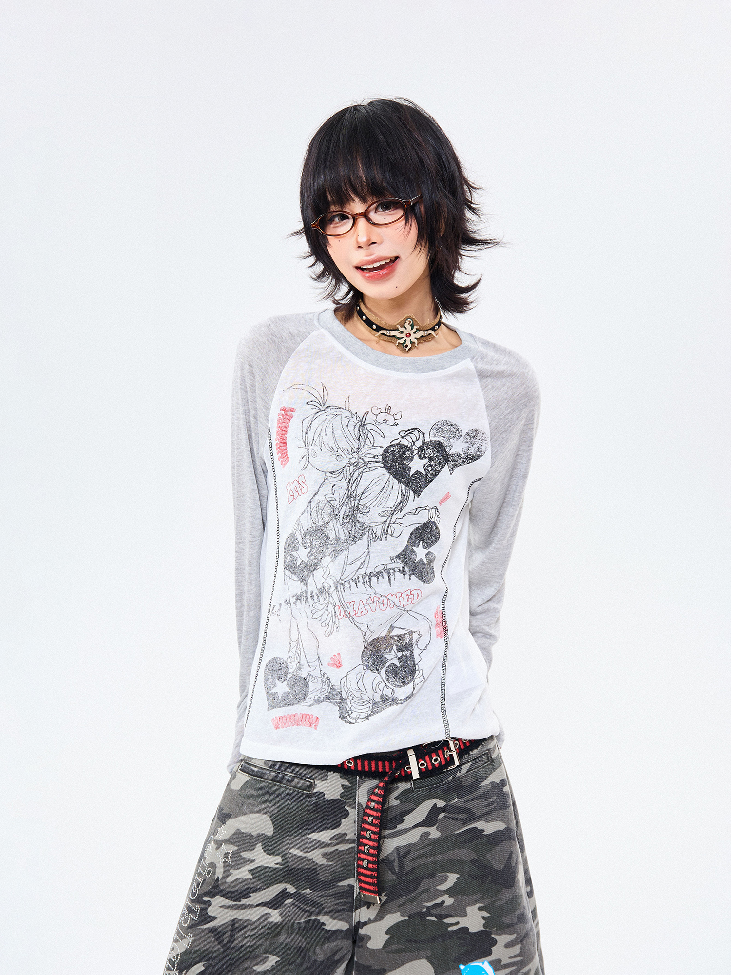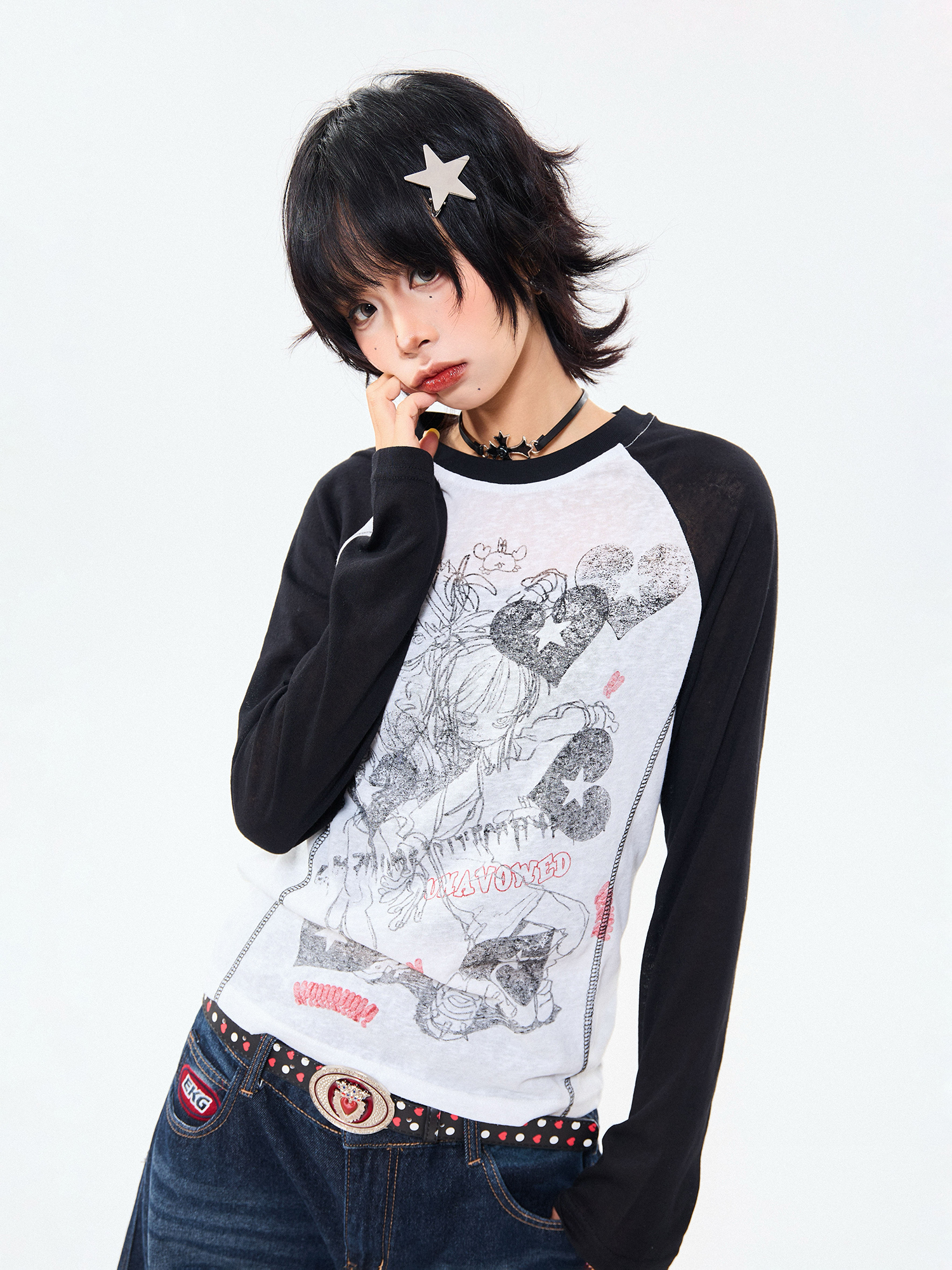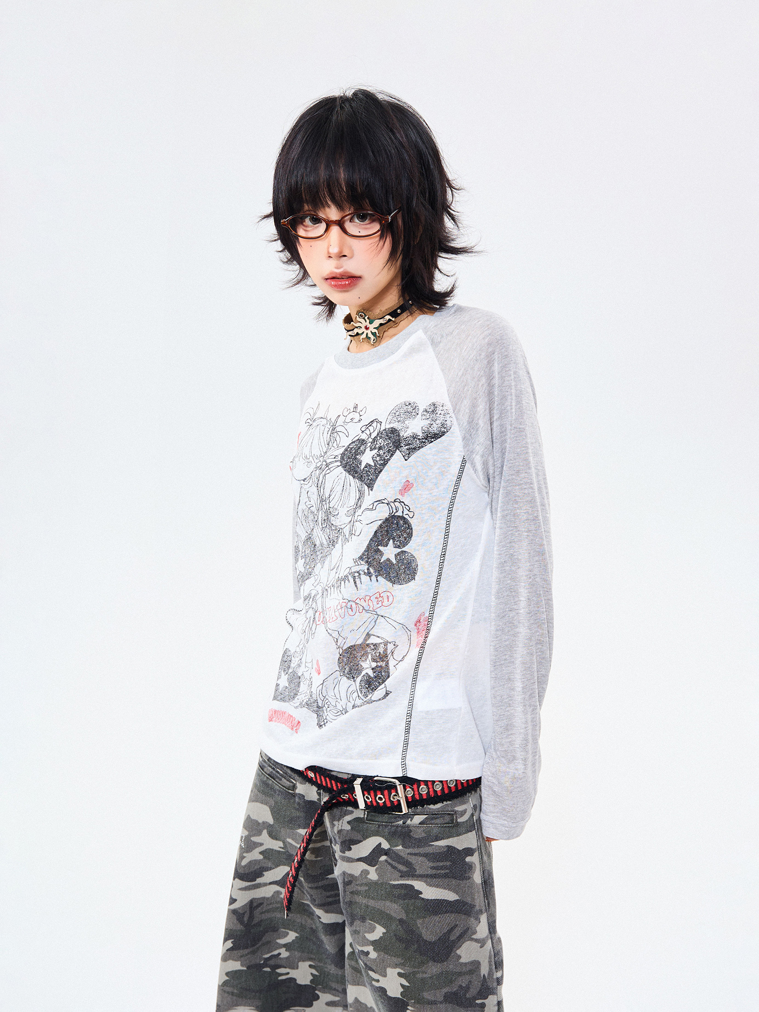 JIMMYTHECREW American Hand-painted Cartoon Long-sleeved T-shirt Women's Thin Top