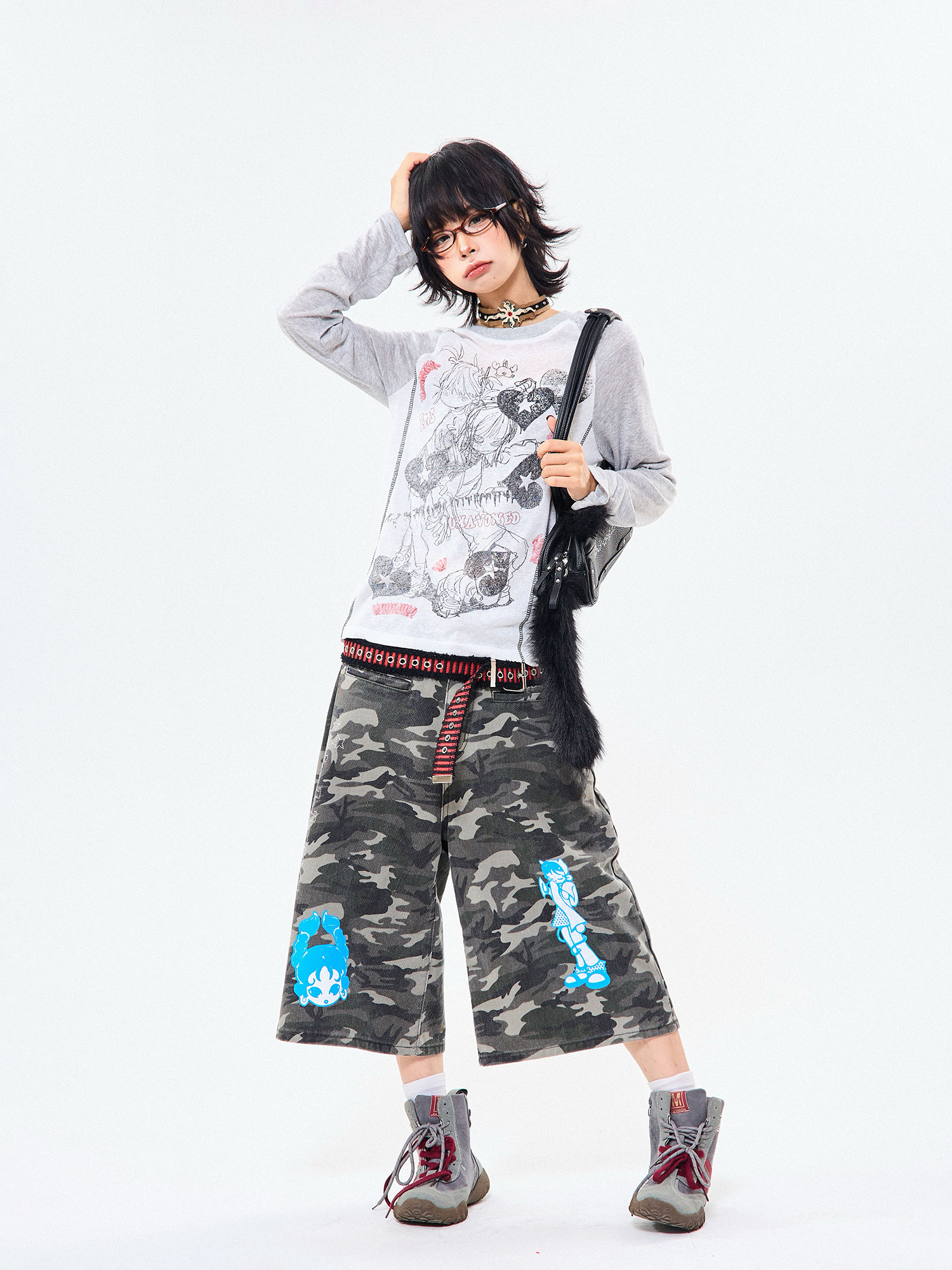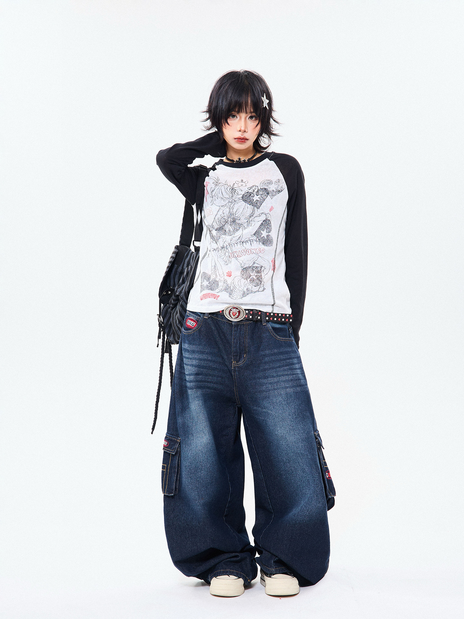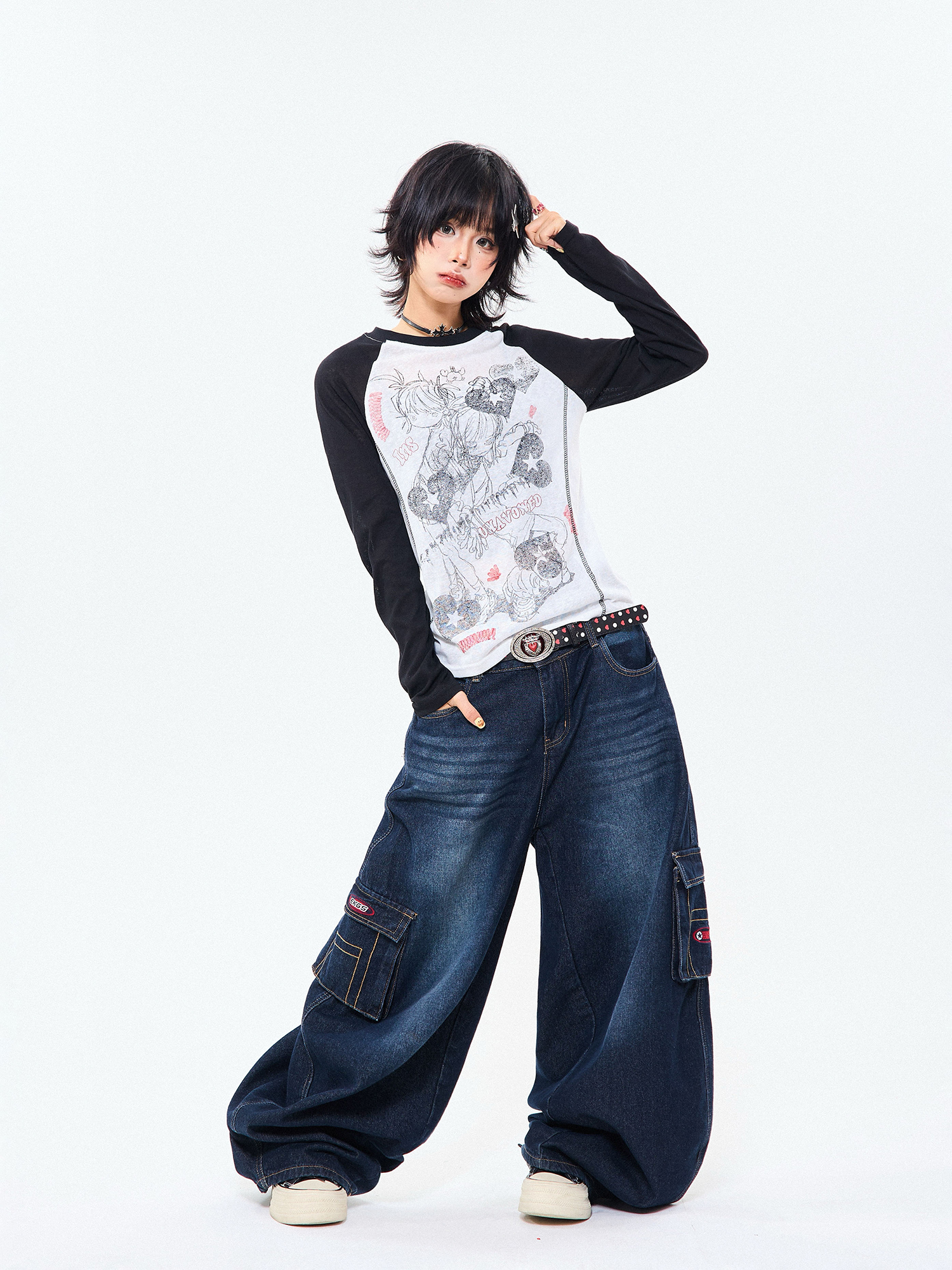 JIMMYTHECREW American Hand-painted Cartoon Long-sleeved T-shirt Women's Thin Top