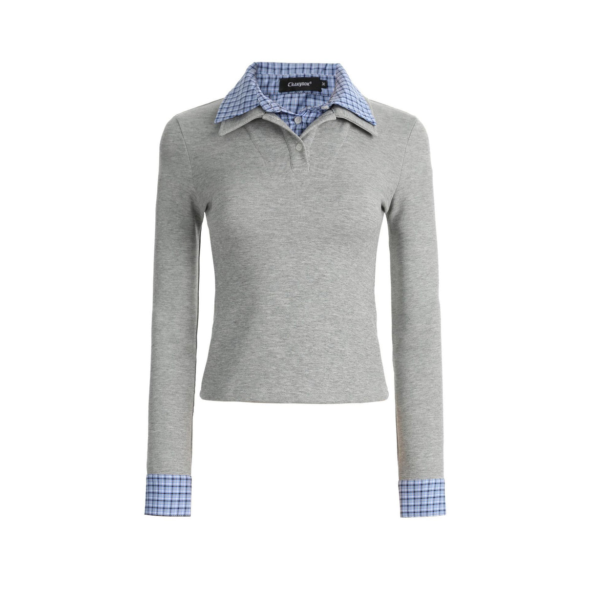 Elevate your autumn wardrobe with our Faux Two-Piece Long Sleeve Top, expertly designed for the modern woman who seeks both style and comfort. This unique piece features a chic color-blocked polo collar that enhances its youthful and trendy vibe, making it a must-have in your collection.