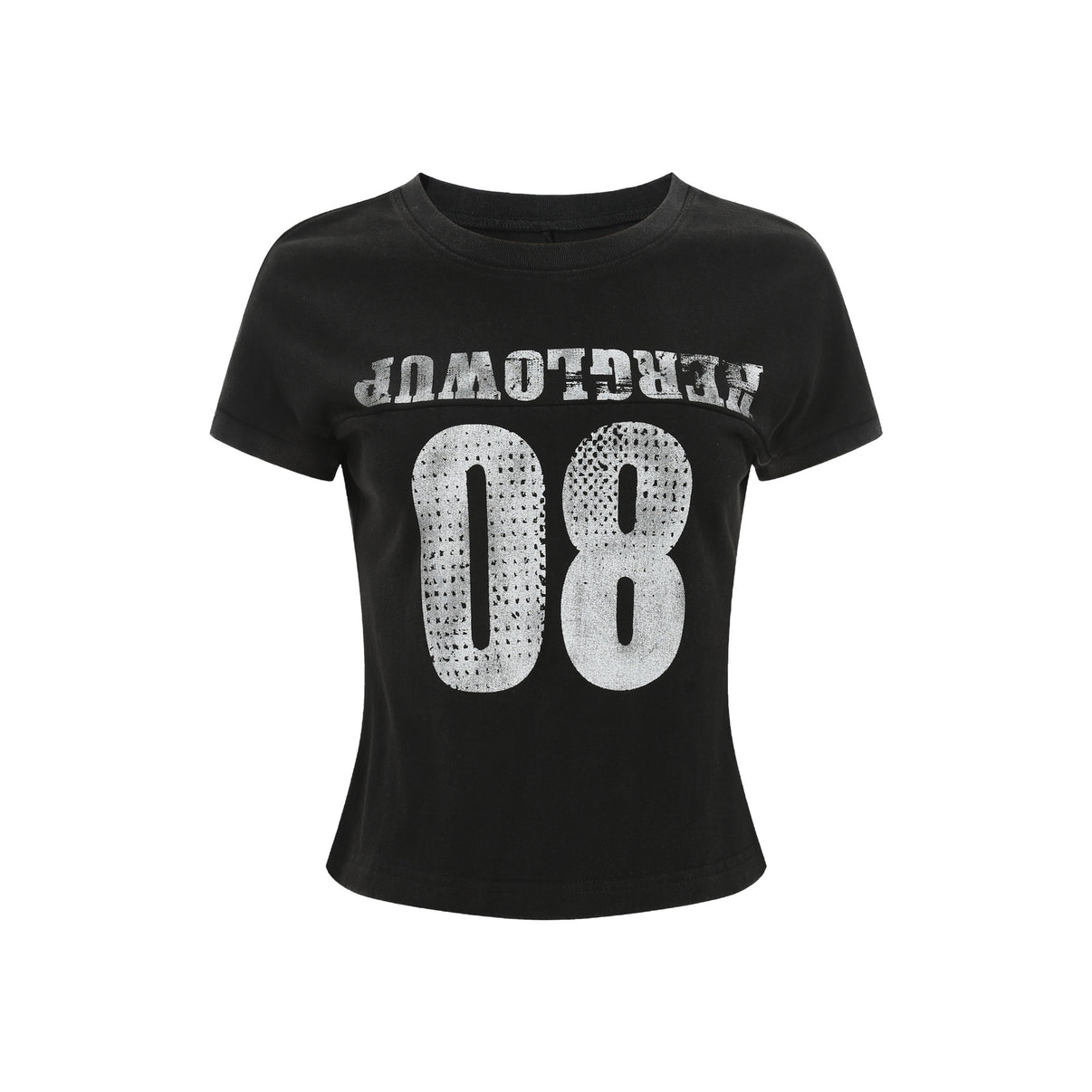 Jimmy women's clothing washed mottled letter short T-shirt sports short-sleeved top