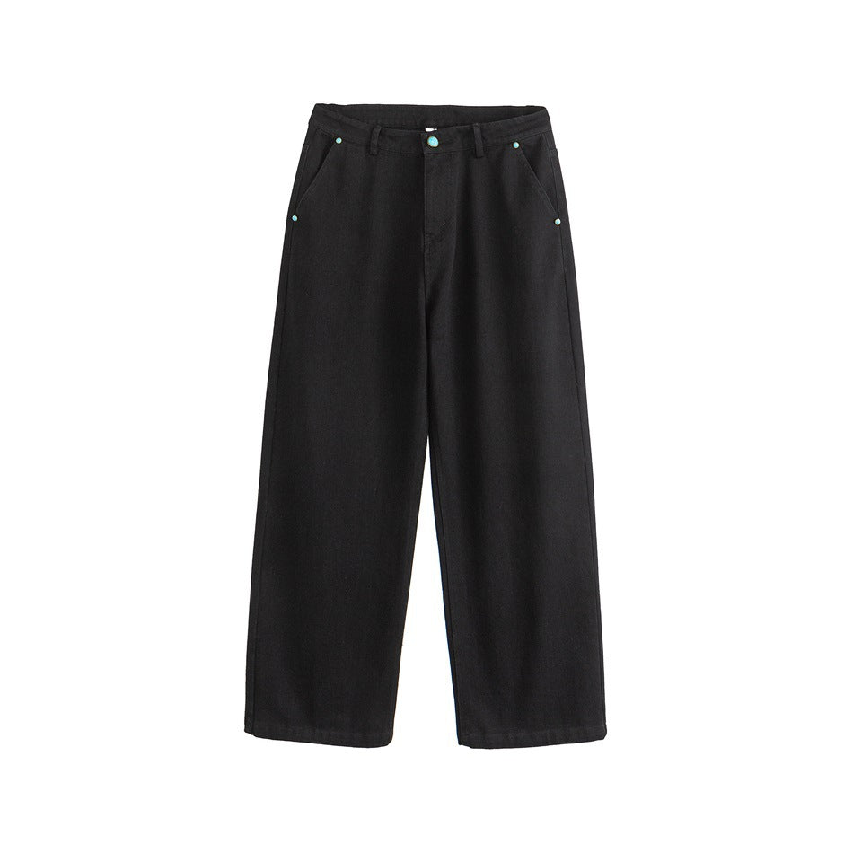 Introducing our Retro Turquoise Button Casual Loose-Fitting Wide-Leg Trousers, a must-have addition to your wardrobe. This stylish piece combines innovative design with timeless elegance, featuring a unique turquoise button detail that adds a touch of vintage flair.