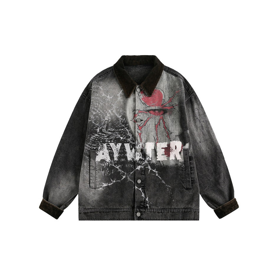 Introducing our Loose-Fit Jacket, a perfect blend of style and comfort, designed for both men and women. This vintage-inspired piece features a unique dark wash that embodies a bold, design-oriented aesthetic synonymous with the dark fashion trend.
