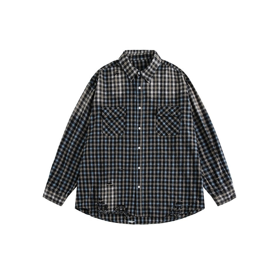 Crafted from high-quality fabric, this long sleeve shirt offers a relaxed fit that drapes beautifully, ensuring both comfort and breathability. The unique washed finish gives it a beautifully worn-in appearance, while the carefully placed distressing adds an edgy twist to the traditional plaid design.