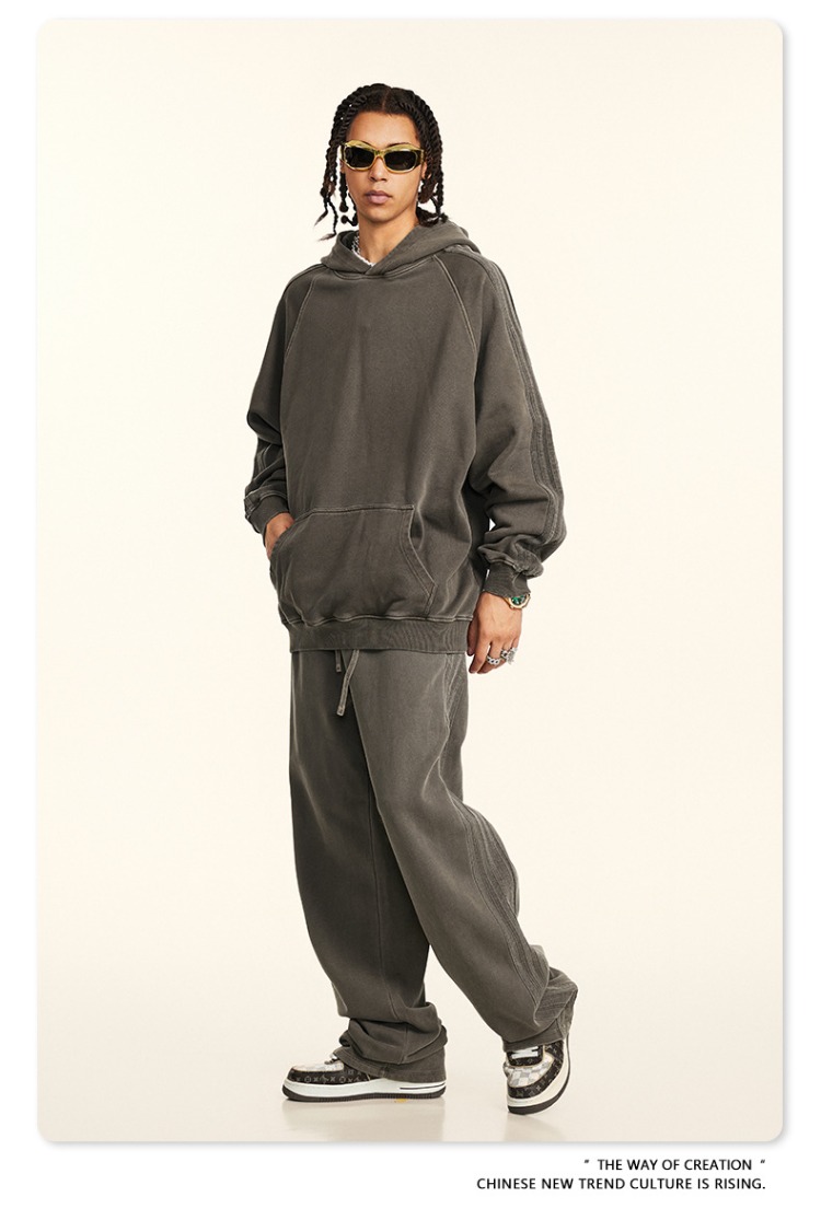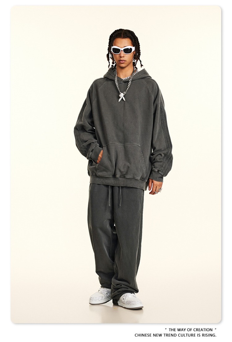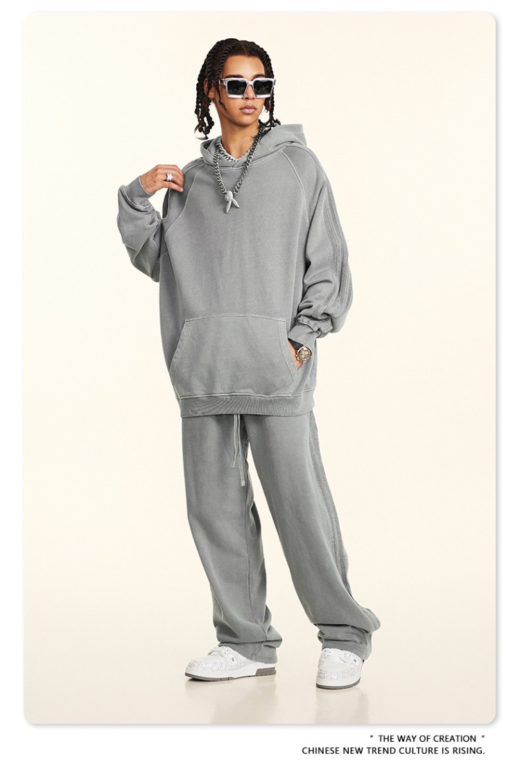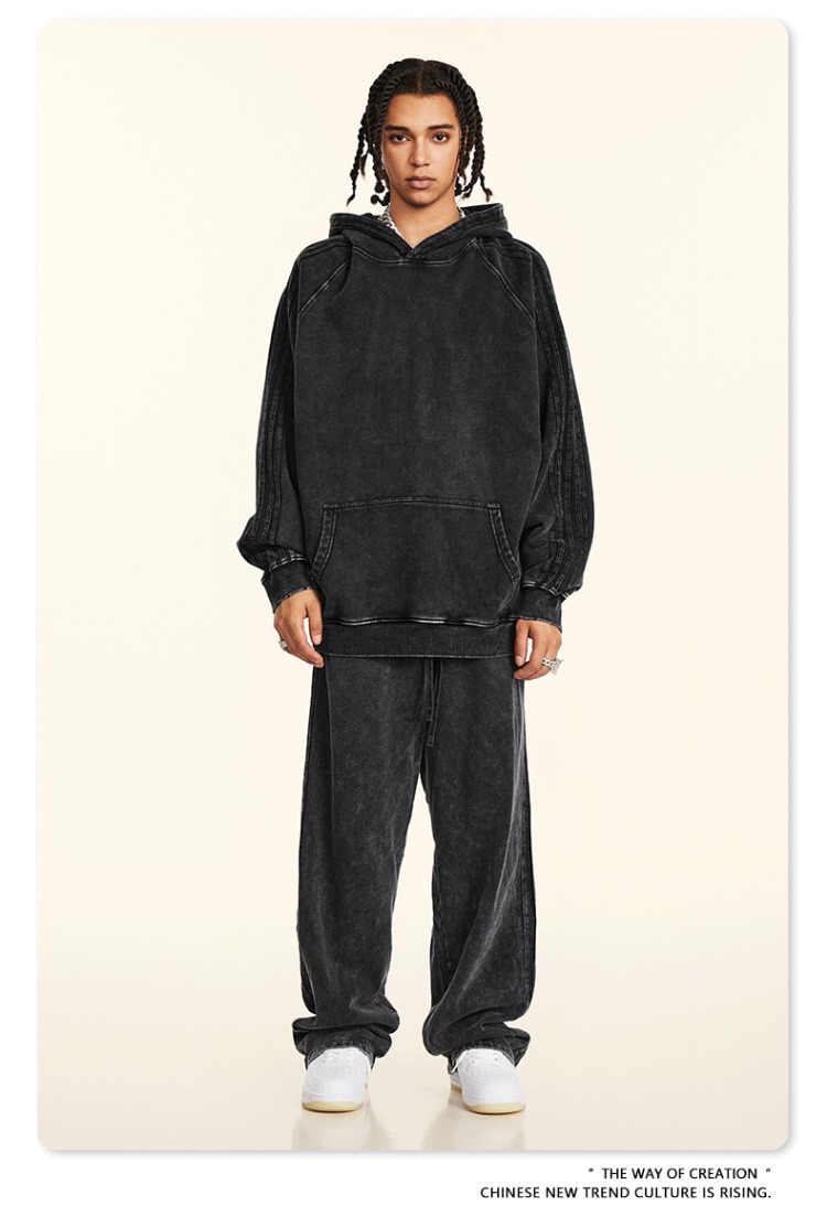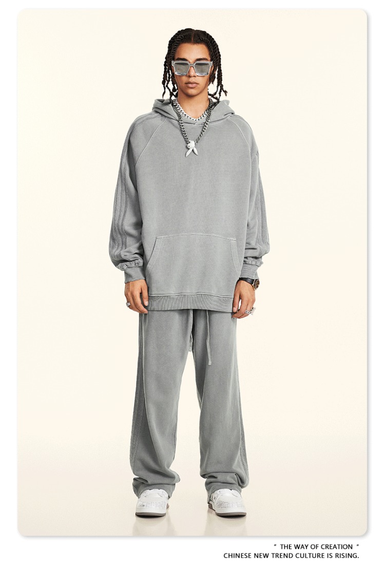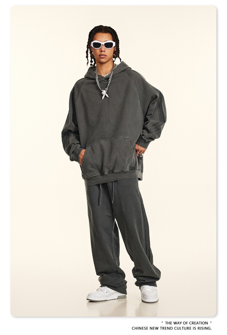 BE Men's Three Bar Striped Retro Sports Wind Wash Sweater Set