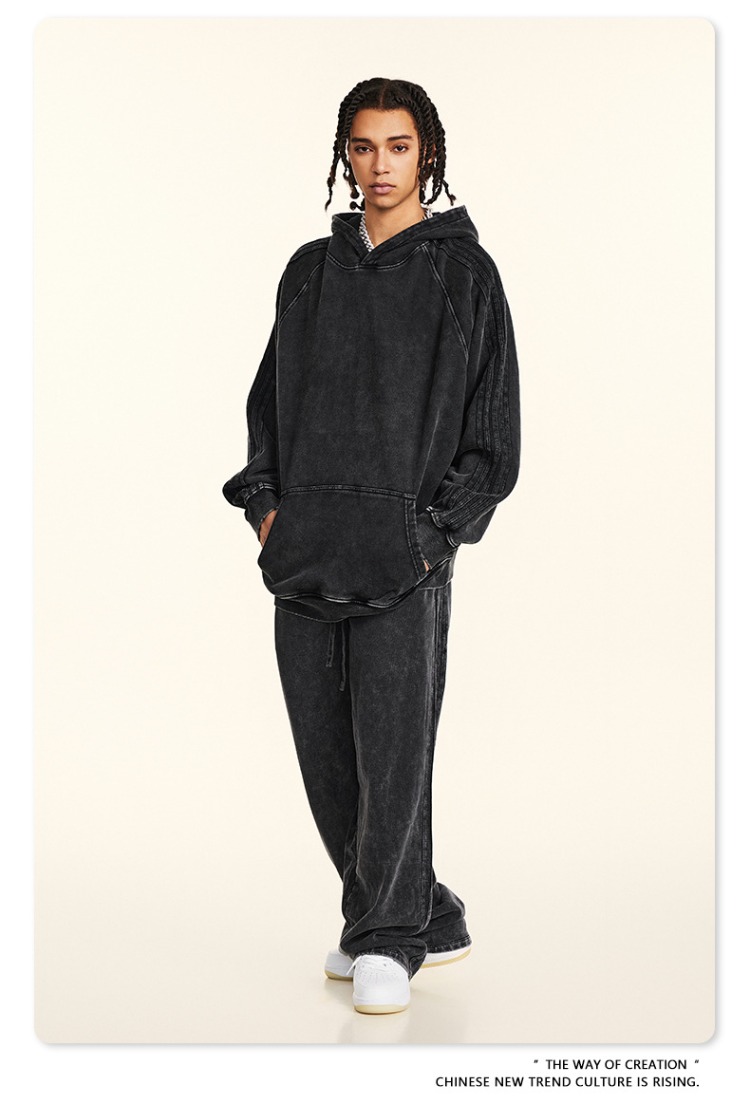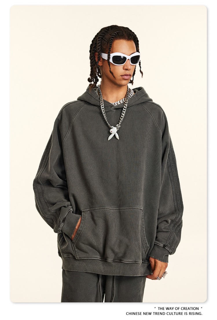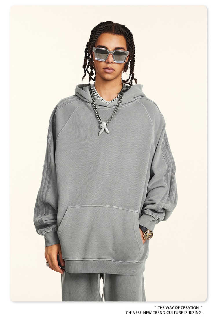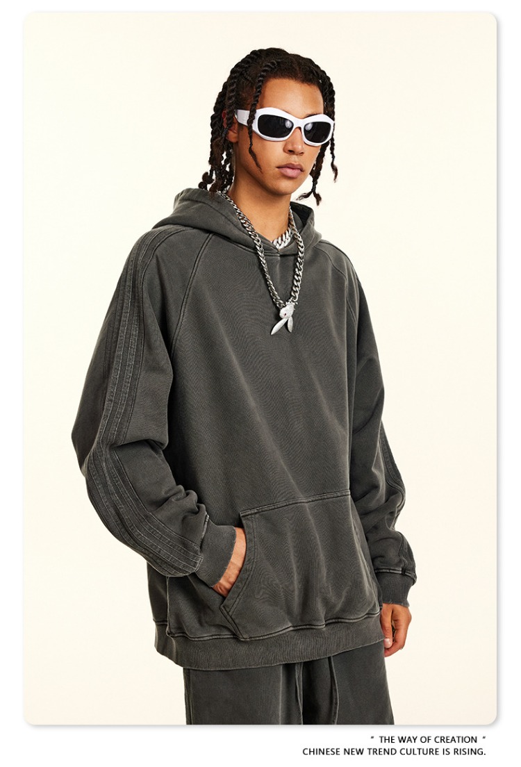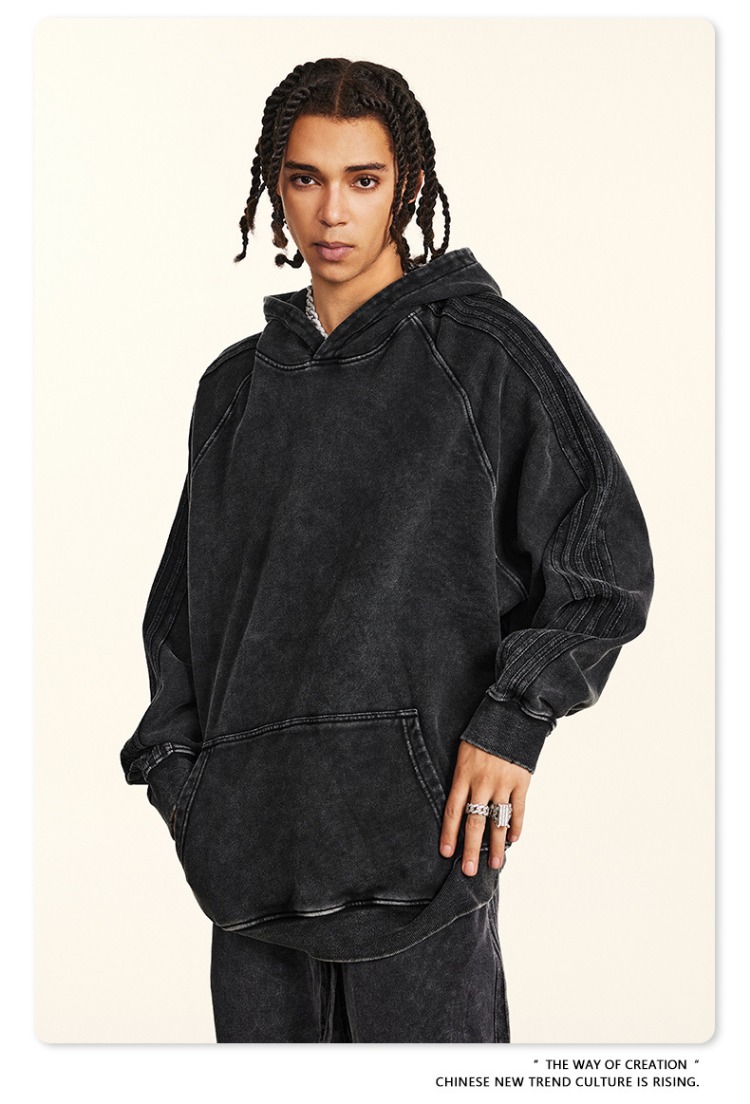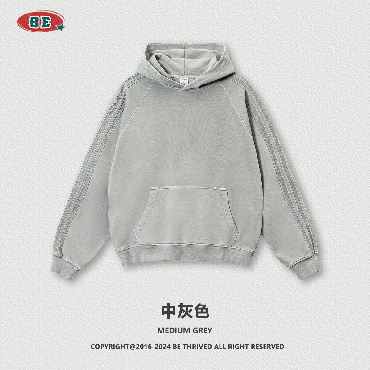 BE Men's Three Bar Striped Retro Sports Wind Wash Sweater Set