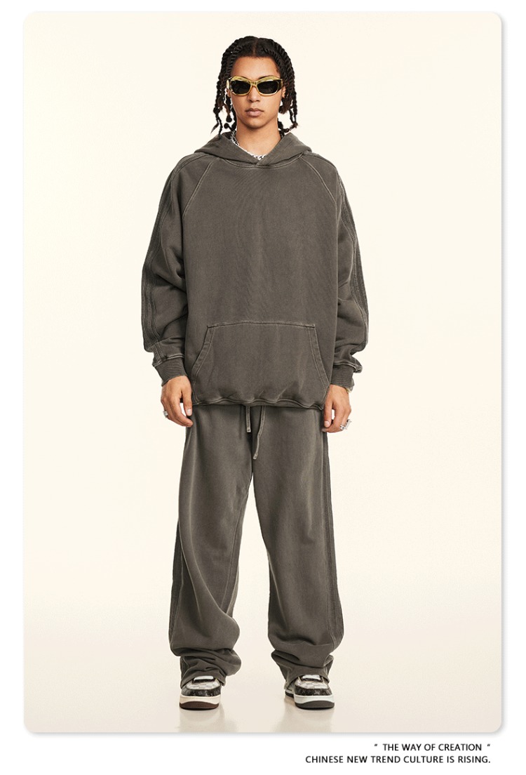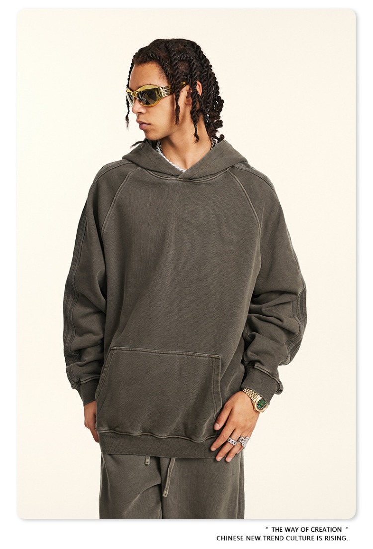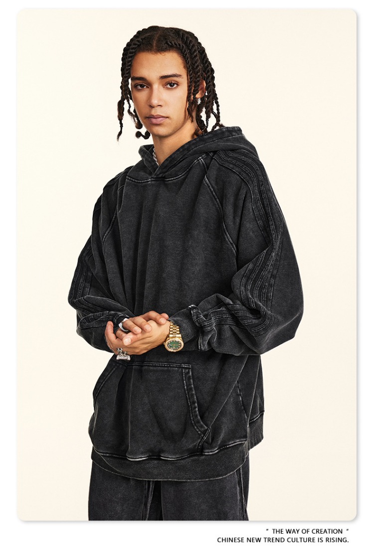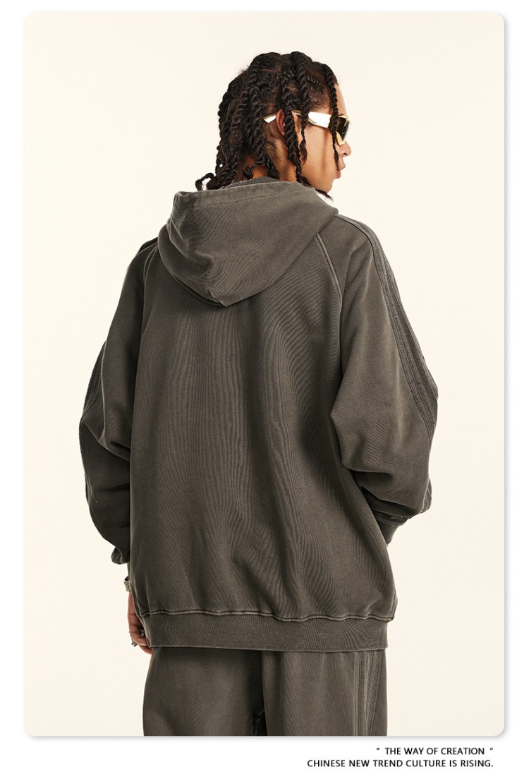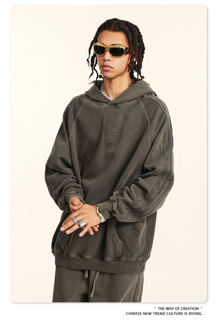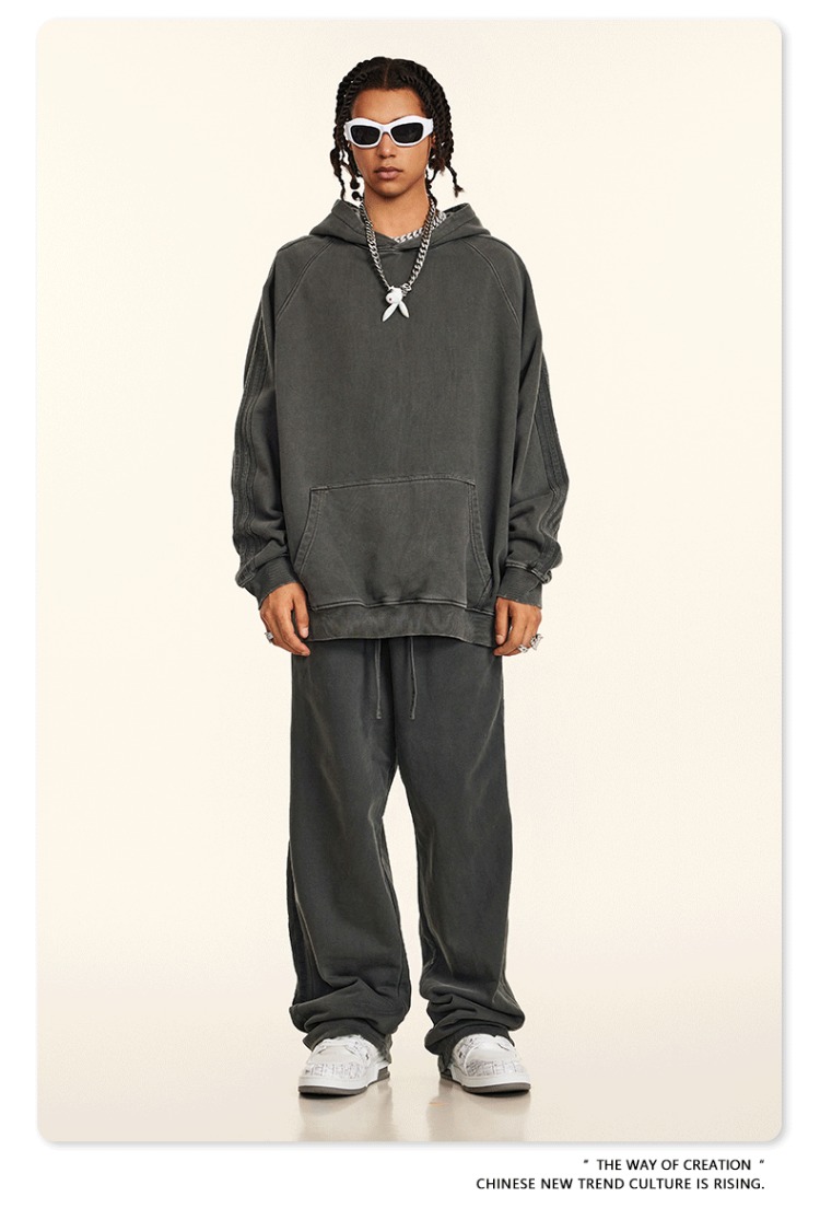 BE Men's Three Bar Striped Retro Sports Wind Wash Sweater Set