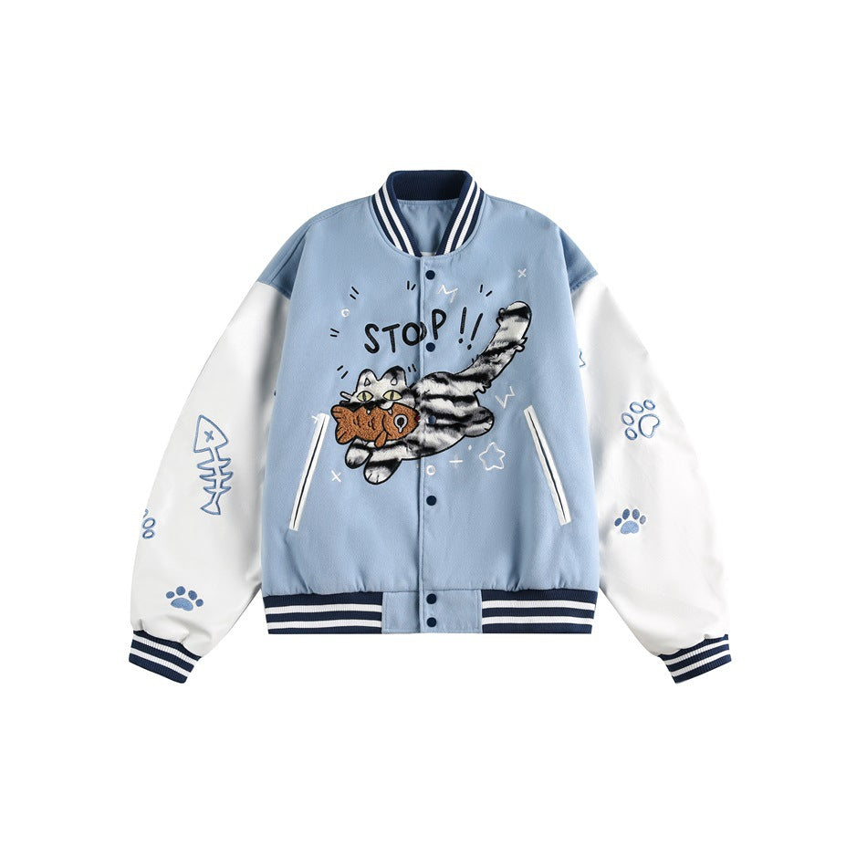 Crafted with care, our baseball jacket not only boasts a great silhouette but also offers exceptional versatility, allowing you to effortlessly pair it with a variety of outfits. Whether you're dressing up for a casual outing or lounging at home, this jacket ensures you stay on-trend with its youthful and fashionable appeal.