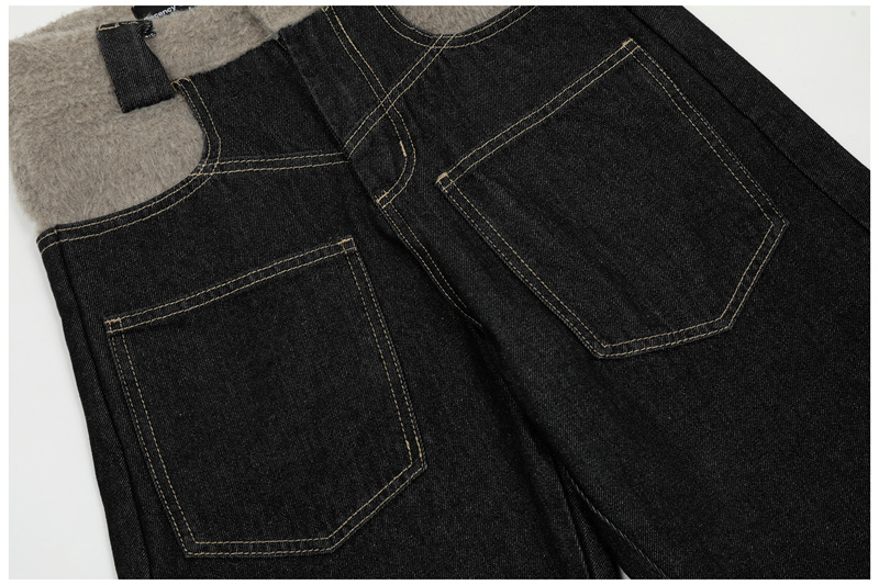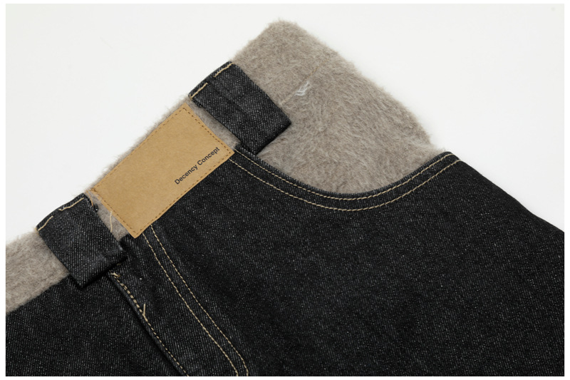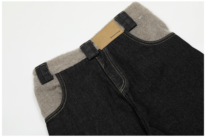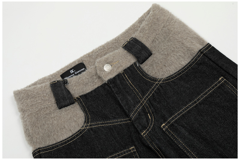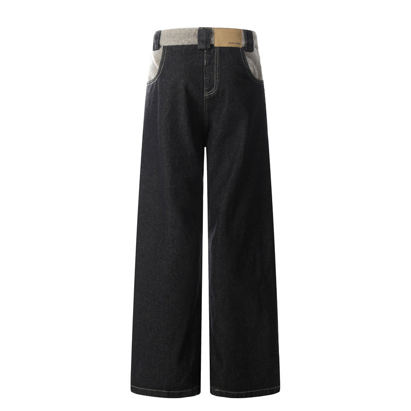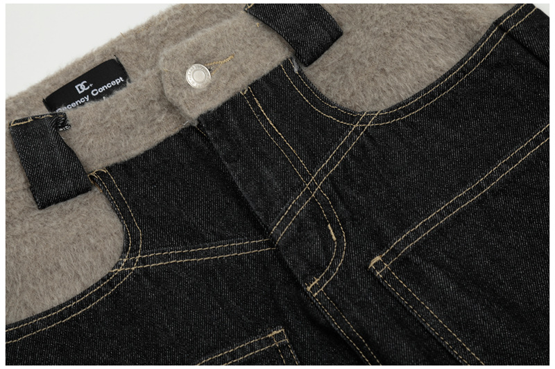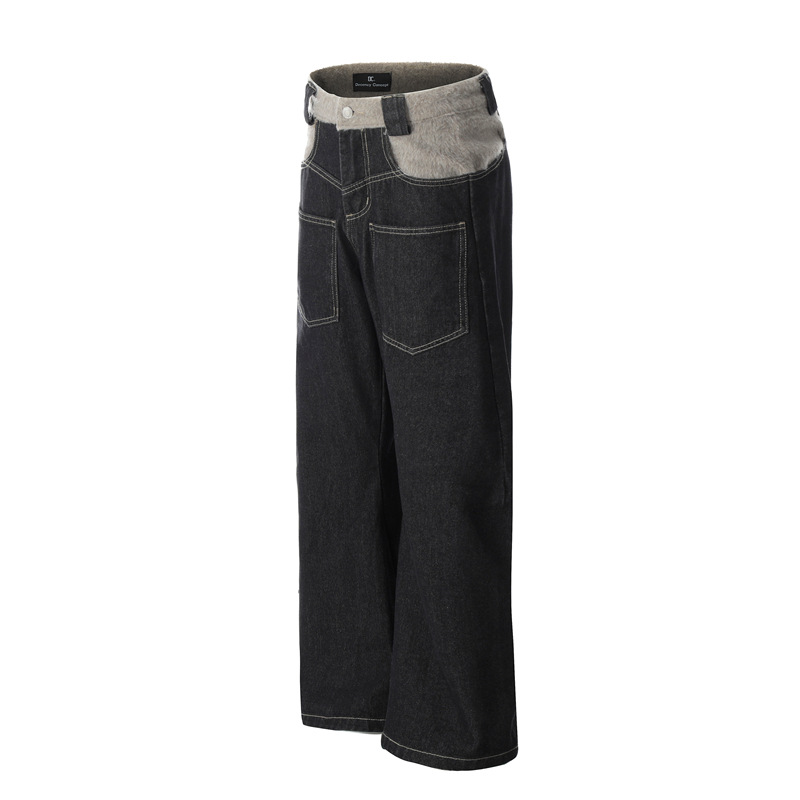DC Niche Reverse Wear Washed Retro Waist Splicing Fleece Straight Wide-leg Pants
