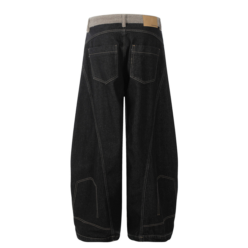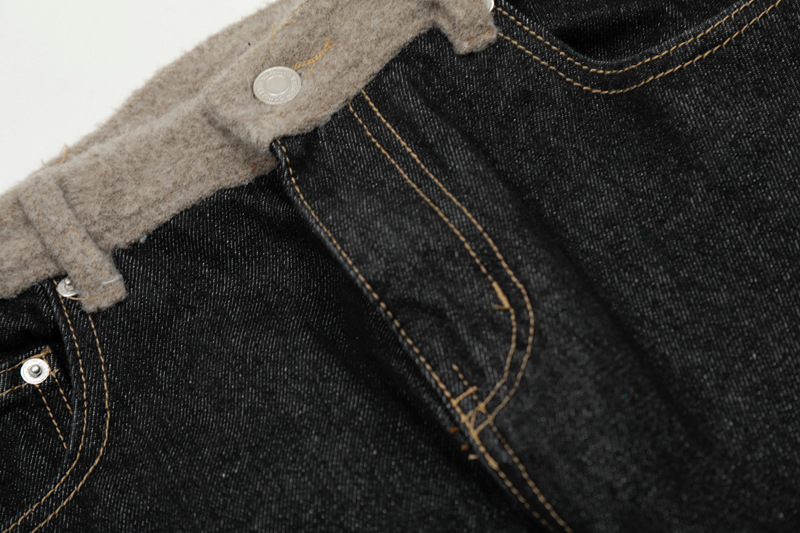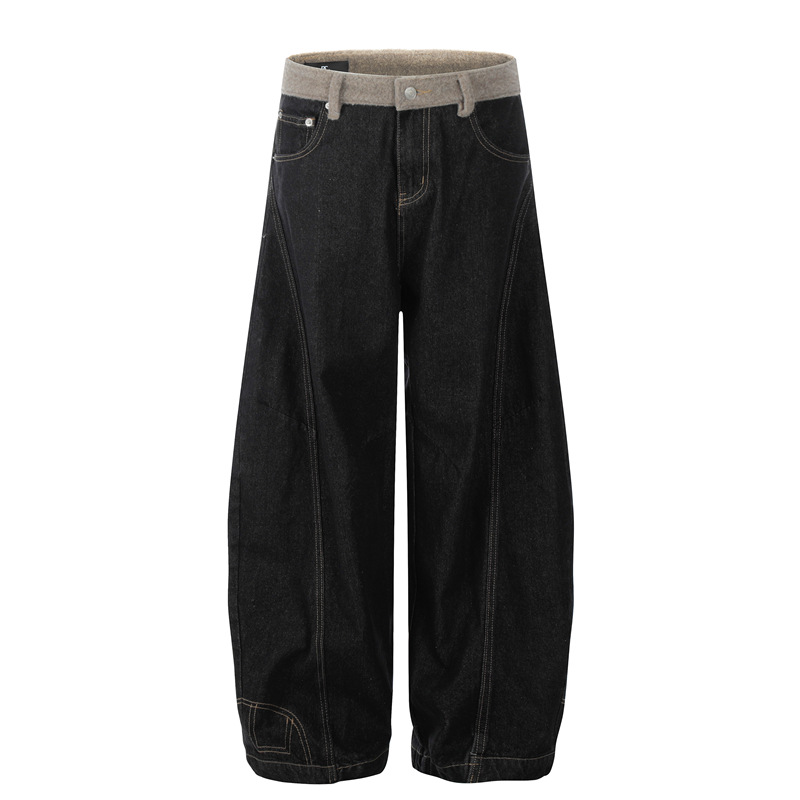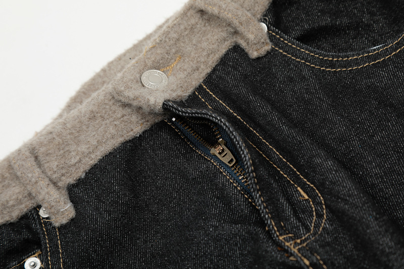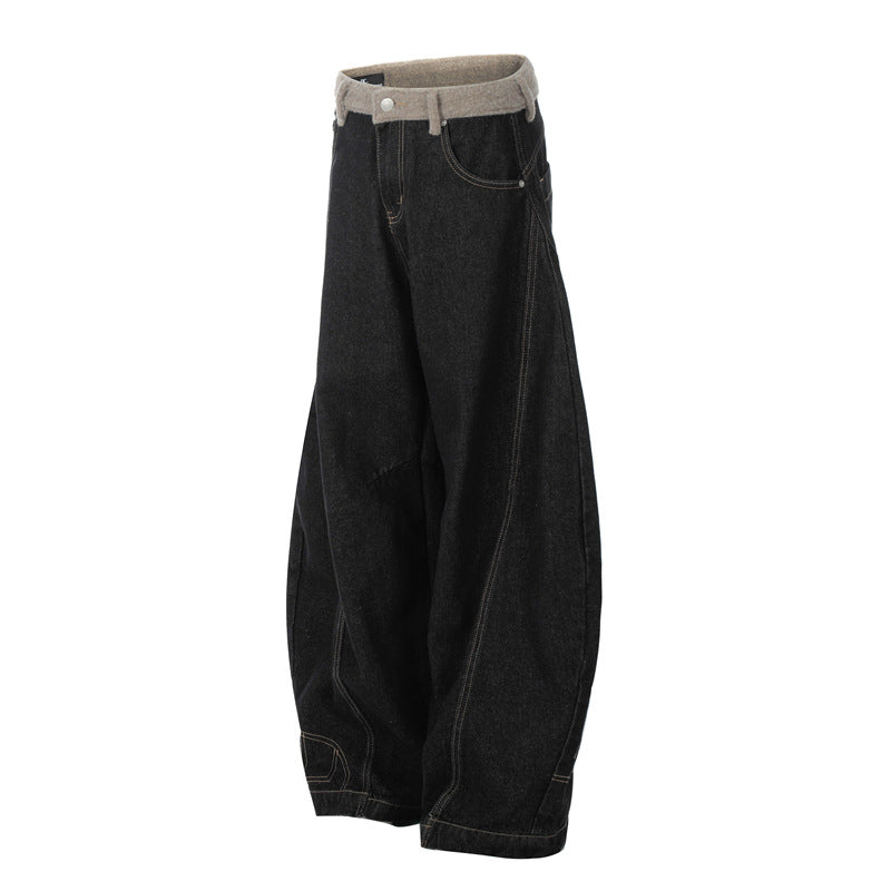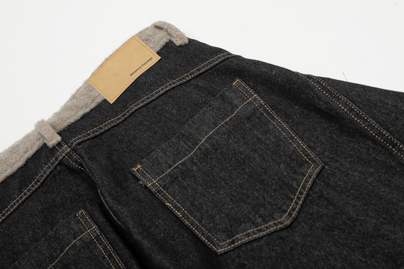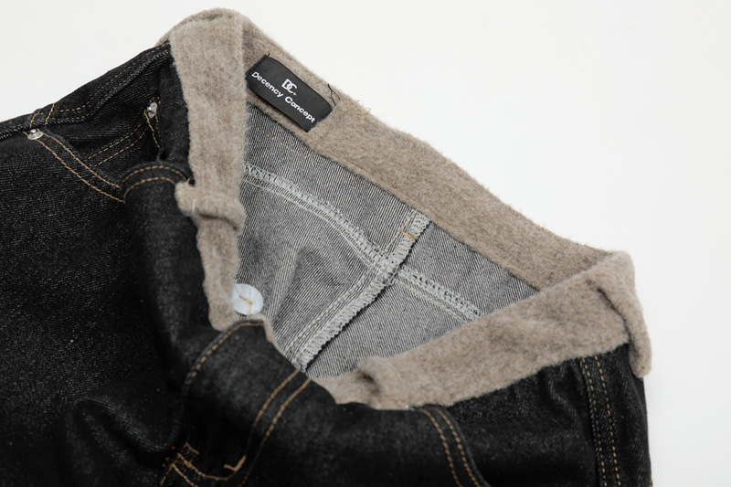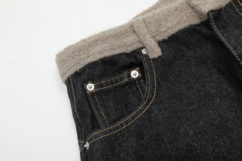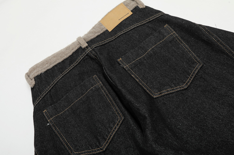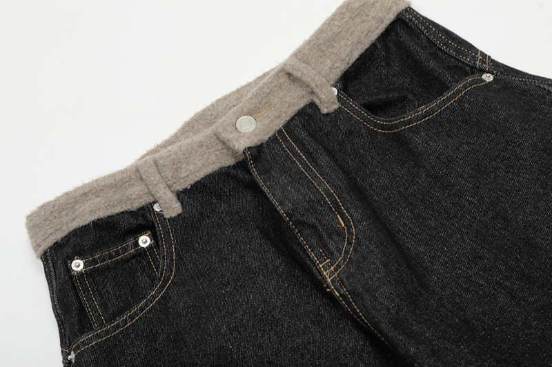 DC Niche Washed Retro Waist Splicing Fleece Straight Wide-leg Pants
