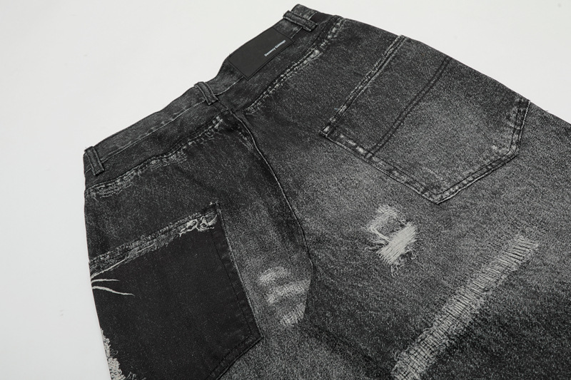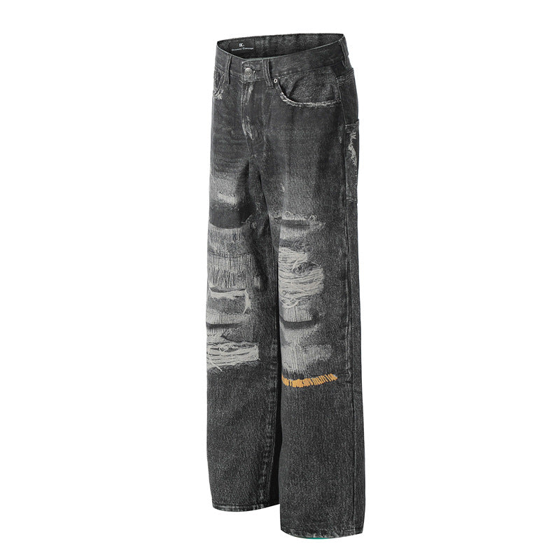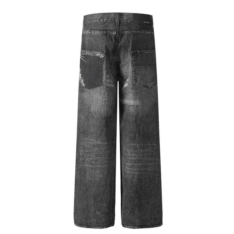 DC Retro Ripped Print Ruffian Handsome Straight Loose Jeans