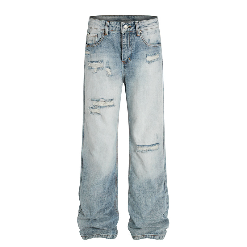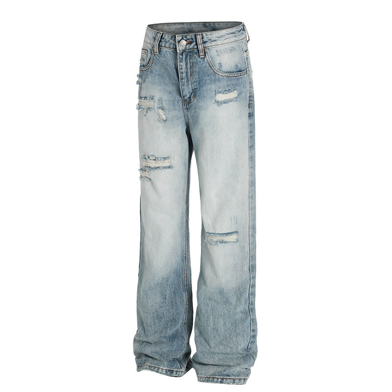 DC Retro Washed Old Ripped Straight and Slightly Pulled Jeans