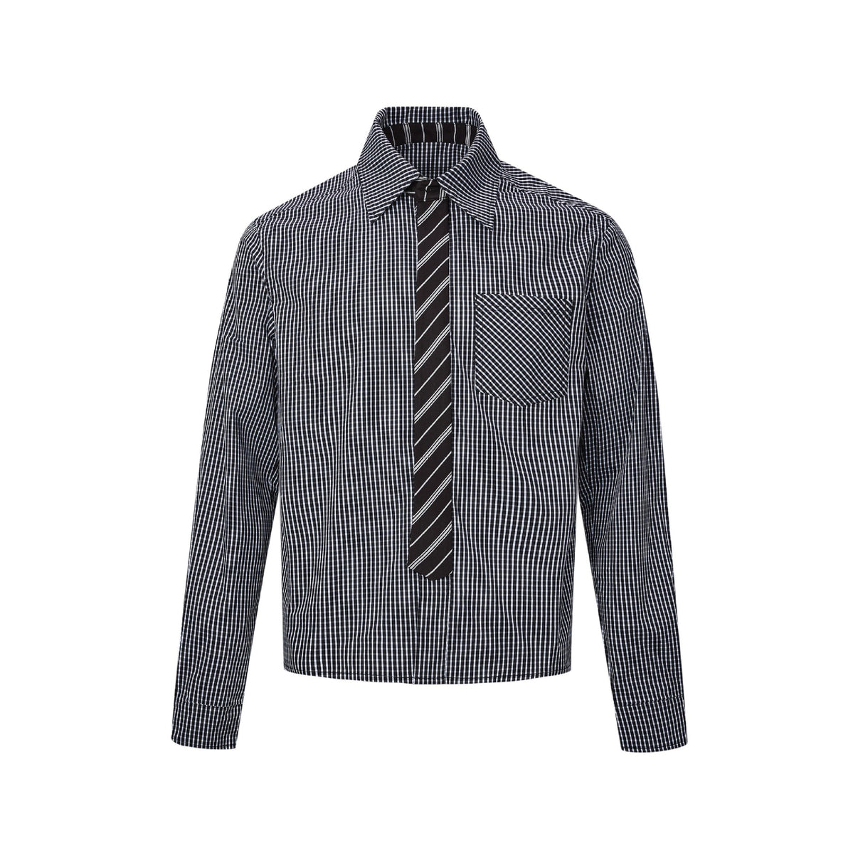 MADEEXTREME with Tie Splicing Old Money Style Loose Casual Plaid Long-sleeved Shirt